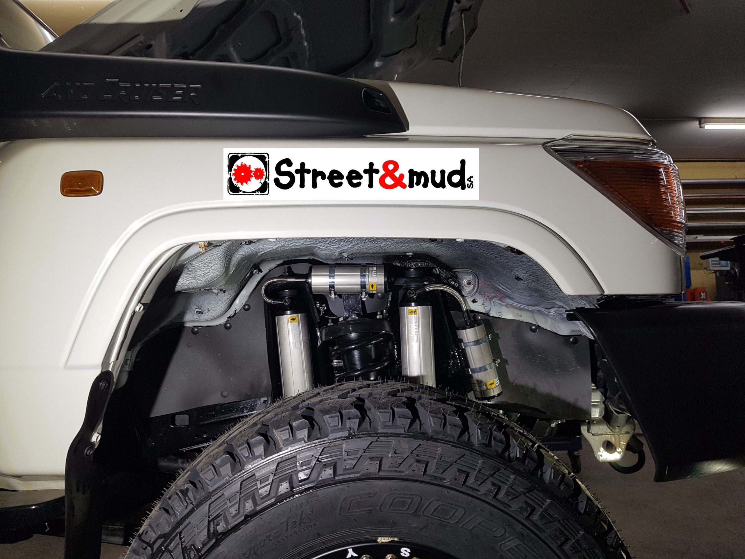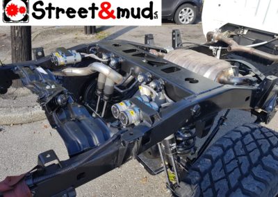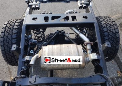 Certains montages mal fait on donné mauvaise réputation à cette façon de faire, mais chez Street and Mud on met un point d’honneur à maintenir le braquage d’origine. Le débattement est généralement augmenté, ou maintenu, mais jamais diminué. Le pneu ne peu jamais entrer en contact avec les amortisseurs.
